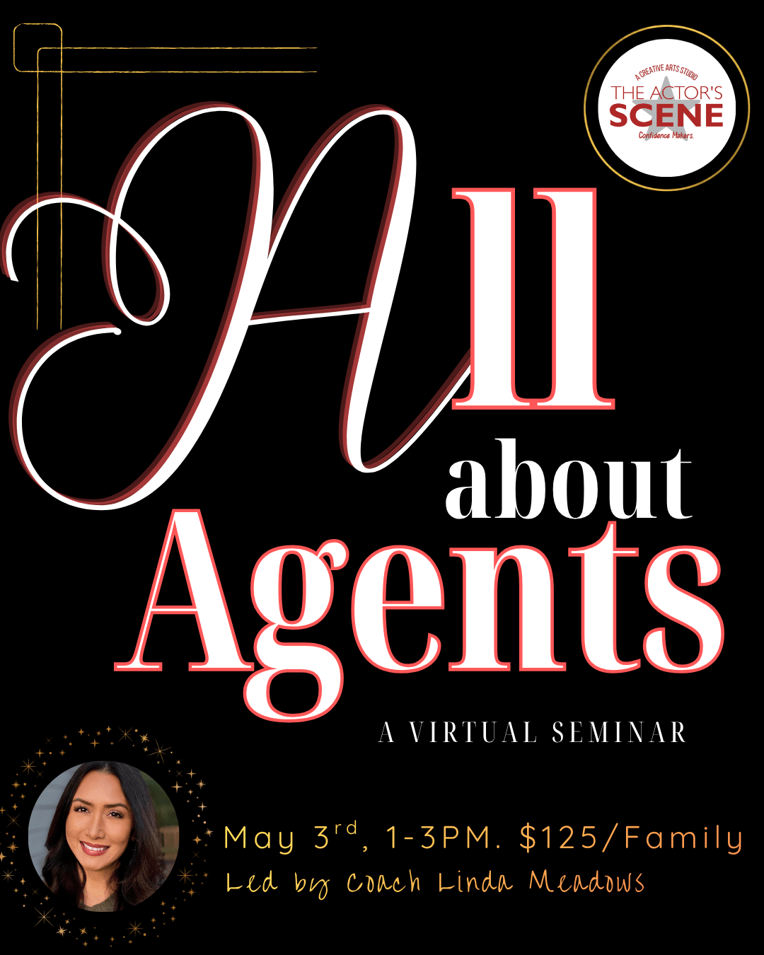 Have you recently signed with an agent or hope to in the near future? Then this virtual seminar is a MUST. Coach Linda Meadows, along with special guest speakers, will be sharing industry insights to help you know what to expect and make the most of your acting career. Whether you are an adult actor, or the parent of a child actor, we encourage you to tune in for this Need to Know info and business insights!